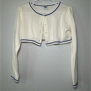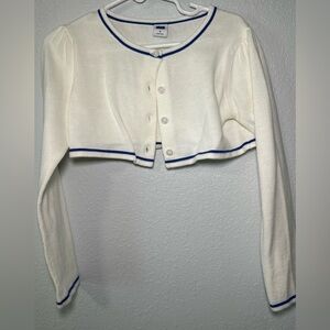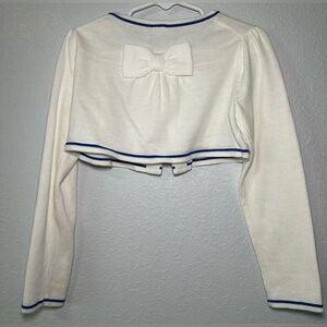 Monte Carlo Charm Janie Jack Cropped Cardigan Sweater White Blue Gold Sz 5