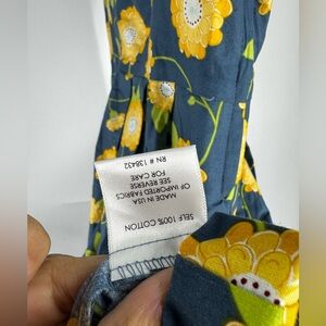 Great colors. Dark teal with bright yellow floral and a full skirt. Large wide collar. Side zip and pockets. In perfect condition.