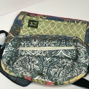 Discover the vibrant Just Be crossbody bag, showcasing a striking blend of blue and green hues. This stylish accessory features a unique geometric pattern, perfect for adding a touch of elegance to any ensemble. Ideal for those on the go, it combines fashion with practicality.