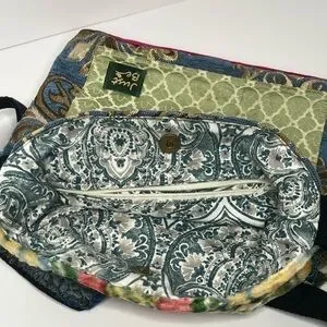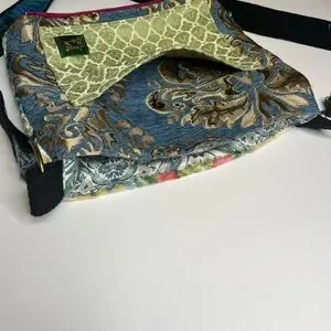 Just Be Blue and Green Crossbody Carpet Bohemian Bag with Geometric Pattern