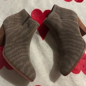 Stylish taupe booties with perforated design. Comfortable and versatile. Ideal for any outfit.
