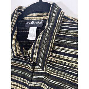 Sag Harbor Striped Jacket 10 Black Western Boho Artsy Textured Workwear Hippie