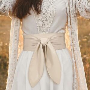 Women's Obi belt wide Vegan Leather corset knotted with bow at the waist