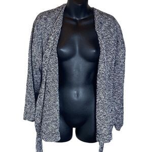 Eileen fisher black/white tweed 3/4 sleeve open front belted cardigan petite med