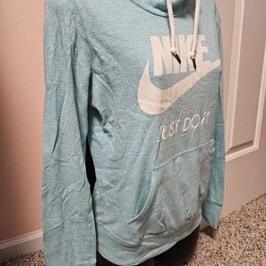 NIKE Long Sleeve Hoodie In good condition. Has drawstring hood with some cowlneck in the front and kangeroo front pocket. Super cute! Tiffany blue is the color(blue/green combo).