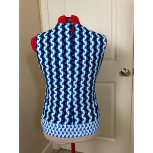 Women's Calvin Klein Sleeveless Top Blue/Black/White Geometric Print Size L