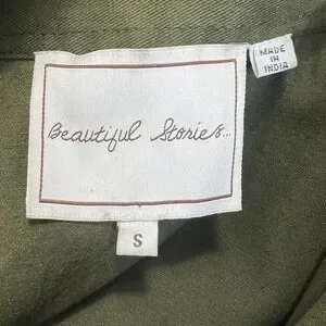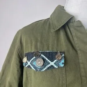 Beautiful Stories Anthropologie Inika Olive Green Utility Jacket S Embroidered