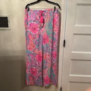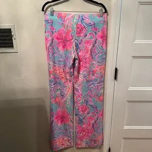 Vibrant and stylish, these colorful palazzo pants are perfect for any occasion. The bright pink and blue design adds a pop of color to your wardrobe.
