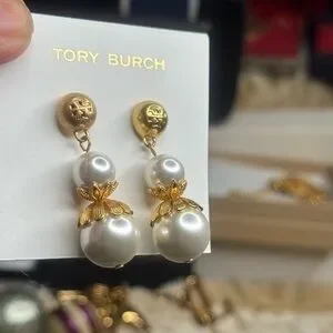 Tory Burch Gold and Pearl Floral Earrings