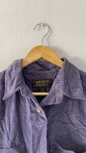 Vintage Eddie Bauer Purple Corduroy Long Sleeve Shirt with Embroidery, Size S