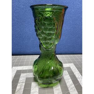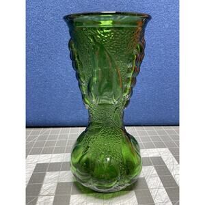 Vintage Italian Emerald Green Vase Embossed Fruit Design Made in Italy 10" Tall