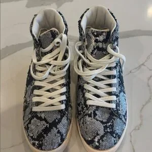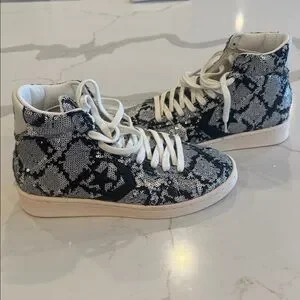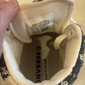 NWOT. Eye-catching Converse high-tops with a monochrome sequin pattern. Ideal for a bold look.