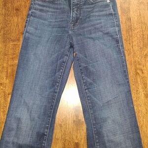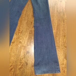 Good American Good Flare Stretch Denim Jeans in Deep Indigo Dark Wash 00/24. some wear near heel area, but other than that good pre-owned condition