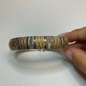 Flexible Link Sterling Silver and Tri-Color with Diamond Cut Bangle Bracelet