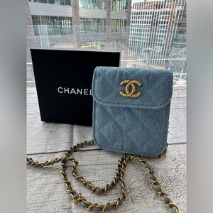 Chanel Makeup Bag crossbody purse chain CC denim pouch