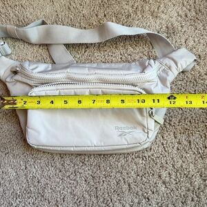 Reebok belt bag in classic gray. Front zip pocket. Adjustable strap for comfort.