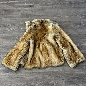 Luxurious faux fur coat with a blend of brown, black, and cream tones. Ideal for a chic, stylish look.