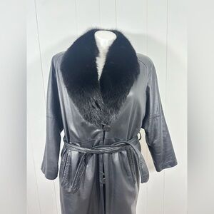 VTG Katie Full Length Womens Sz M Soft Leather Coat With Fox Lined Collar Belted