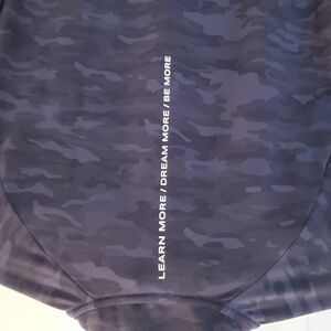 Alphalete brand men lightweight jacket in a dark camouflage color. Zip up closure. Side pockets. Writing down back. Size large with a pit to pit 22" plus stretch from nylon fabric and length 28". Great condition