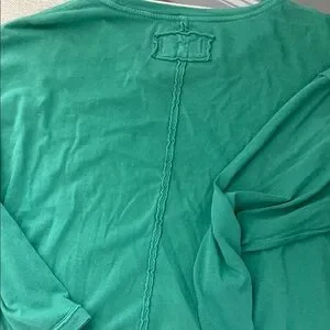 Casual green t-shirt by We The Free. Soft and comfortable, oversized fit. Note the last photo from Free People’s website showing the fit (note this is just to show fit, the actual shirt being sold is the bright green on the 1st photo).