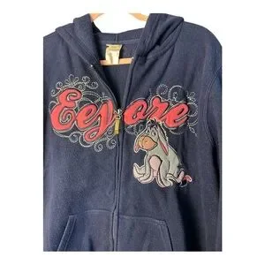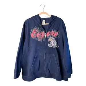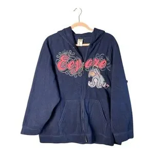 Disney Women's Eeyore Navy Blue Long Sleeve Full Zip Fleece Hoodie Size 2X