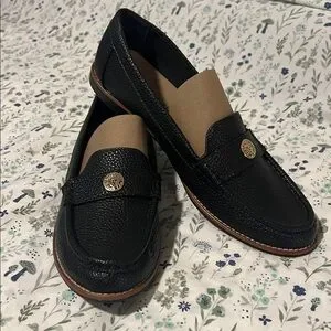 Anne Klein Stylish black leather loafers featuring a gold accent. Perfect for any occasion. Worn twice, nearly new!