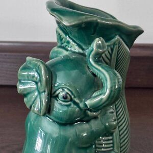 Adorable Ceramic Lucky Elephant Planter Vase in Emerald Green