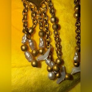 Ylang ylang of Beverly Hills vintage Gold-tone heart-shaped dangle earrings with figural elements and pearl accents
