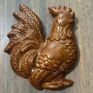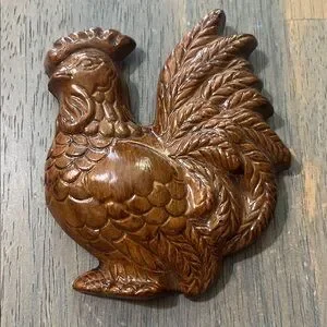VINTAGE CHALKWARE Brown Chicken/ Rooster Wall Decor Set kitchen decor