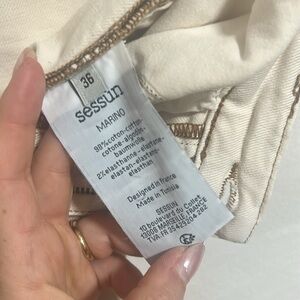 Sessun Marino high rise jean size 36 small white ecru brown contrast stitching