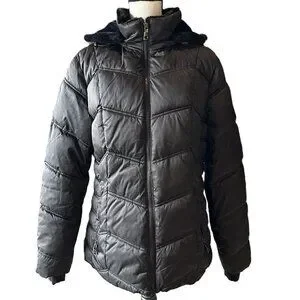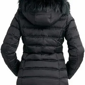 Women's Nautica Faux Fur Trim Hooded Mid-Length Black Puffer Jacket Size XL