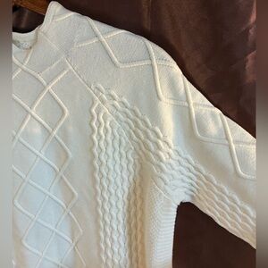 Cyrus of New York, Cream mock neck, chunky cable knit, pullover sweater.