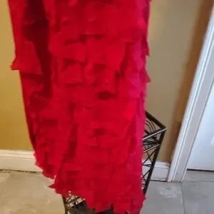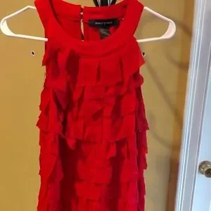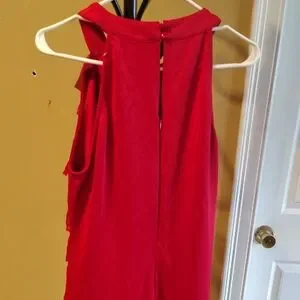 Vibrant red pre-owned but in great condition midi dress with layered ruffles. Sleeveless design. Perfect for any occasion. Also has two buttons and a halfway zip up in the back. Sexy dress that will get plenty of compliments😁