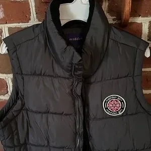Madden girl Stylish gray puffer vest featuring a logo patch. Perfect for layering. NWOT. size large