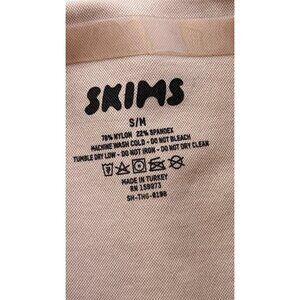 Elevate your shapewear game with this SKIMS Kim Kardashian Core Control Thong in Beige, Size S/M. This wire-free thong is perfect for those who want to achieve a flattering silhouette without compromising on comfort. The thong features a solid pattern with a logo accent, slimming effects, and stretchy materials made of nylon and spandex. Designed for women, this shapewear comes in a pack of one and is perfect for those who want to achieve a smooth waistline. The thong is ideal for use with Barbie-inspired outfits and other colorful themes. Get your hands on this Core Control Thong and achieve the perfect silhouette today!