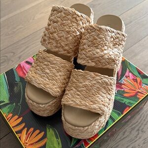 Farm Rio natural braided raffia platform shoes. Size 9 women’s. New with box.