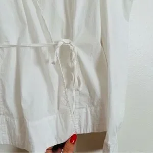 Jason Wu White Long Puff Sleeve Wrap Blouse Elegant Poplin Tailored Top