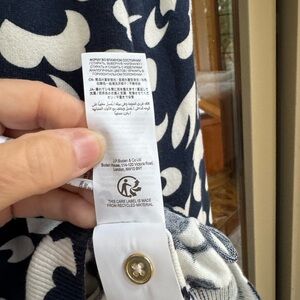 Stylish Boden cardigan with bold floral design. Navy and white colors. Perfect for layering.