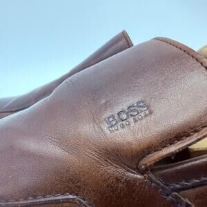 Hugo Boss Mens Brown Leather Loafers Dress Shoes Size 9.5