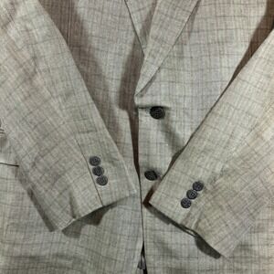 D'Urban Jacket Mens EU 54 US 44 Beige 100% Linen Plaid Sport Coat Blazer