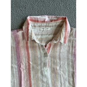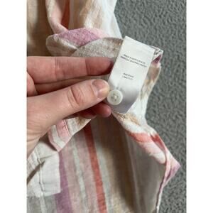 BeachLunchLounge Button Top Large Linen Striped Cap Sleeve White Pink Boxy Boho