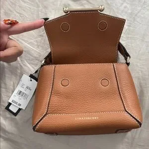 Strathberry Mosaic Nano Leather Mini Tote in tan with vanilla stitching NWT