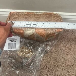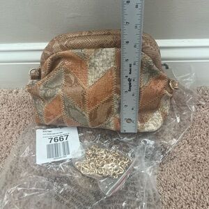 New Anthropologie patchwork clutch crossbody bag purse faux snakeskin tan beige