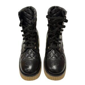 $3000 Chanel black 20B quilted lace-up boots size 35.5/5.5
