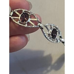 Sarah Coventry Signed Purple Rhinestone Silver Tone Link Bracelet