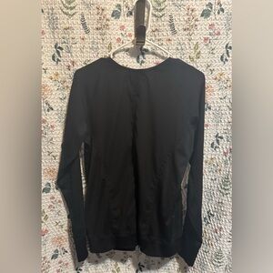 Stylish black zip-up top by Koi Lite. Features a sleek design. Scrub jacket. Chipping zipper but still functional