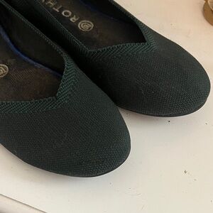 Rothy’s shoes, size 10.5 Elegant dark green flats with blue trim. Perfect for versatile wear. Used condition, pics show use.