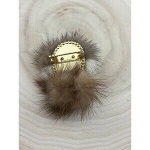 Vintage Mink Fur Lady Face Brooch Pin Gold Tone 1950s Glam Jewelry