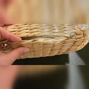 Material: Straw + Silver faux leather
