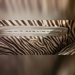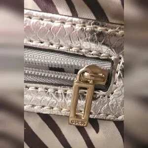 The bag includes a stylish brown zebra-print scarf charm and a signature zebra satin interior with Guess logo plaque.